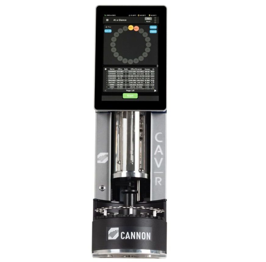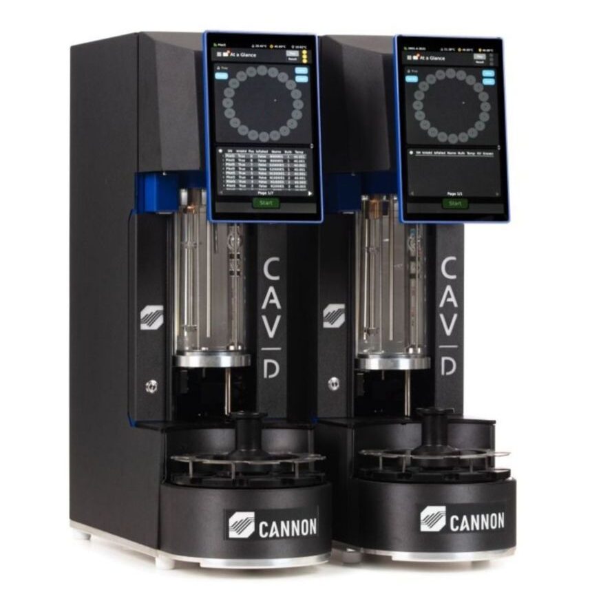 Los viscosímetros automáticos CAV™ Series 5 de Cannon Instrument Company están diseñados para la medición de viscosidad cinemática conforme a normas como ASTM D445. Su sistema automatizado integra control térmico, medición y limpieza, garantizando resultados precisos, repetibles y eficientes en el laboratorio.